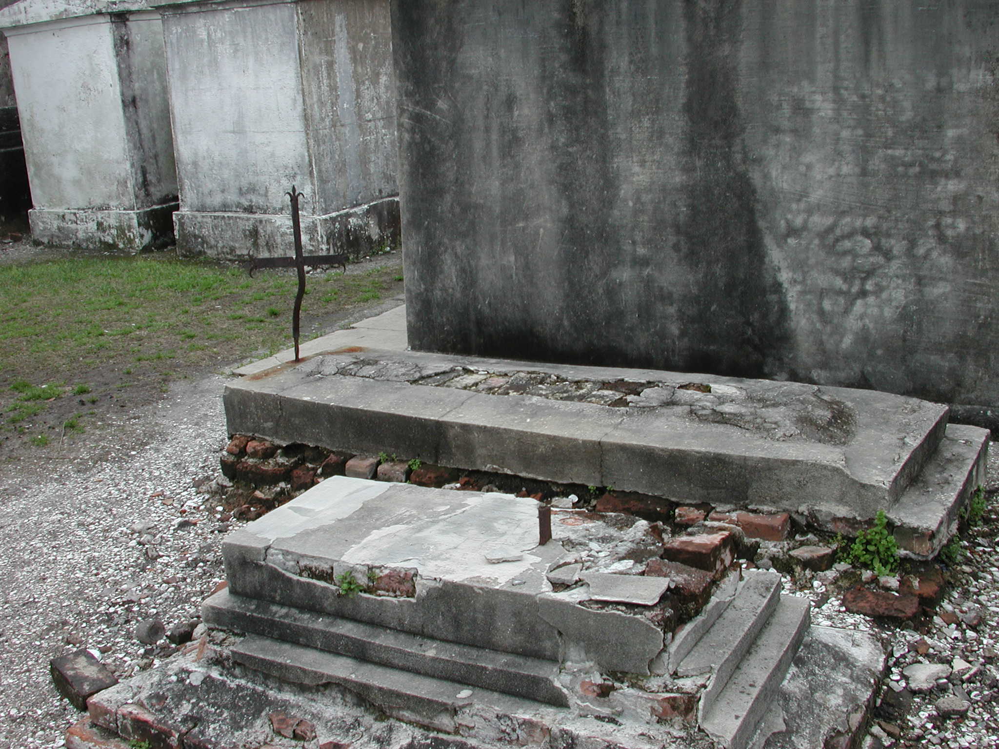 The graves of two children who died of yellow fever. Not only in disrepair, they have also been recently vandalized.