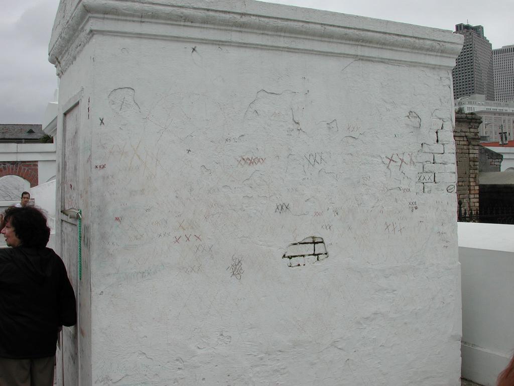 The tomb of Marie Laveaux. Many a voudoun practitioner comes here to mark his X's.