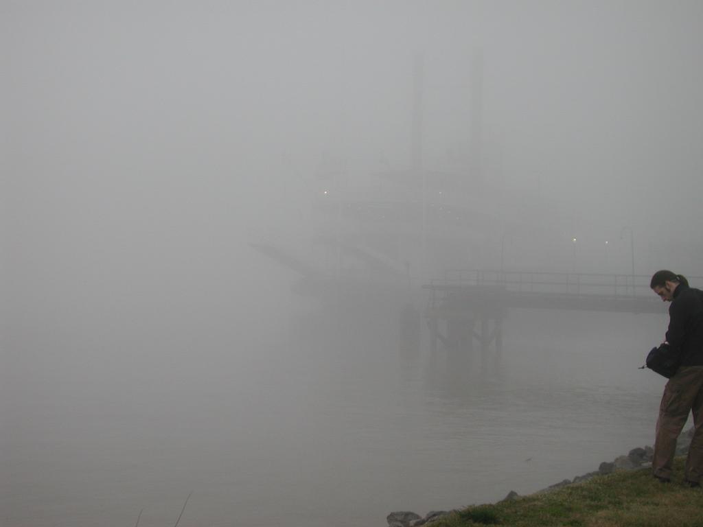 On Tuesday, the river (that's the Mississippi, of course) was completely covered in mist.