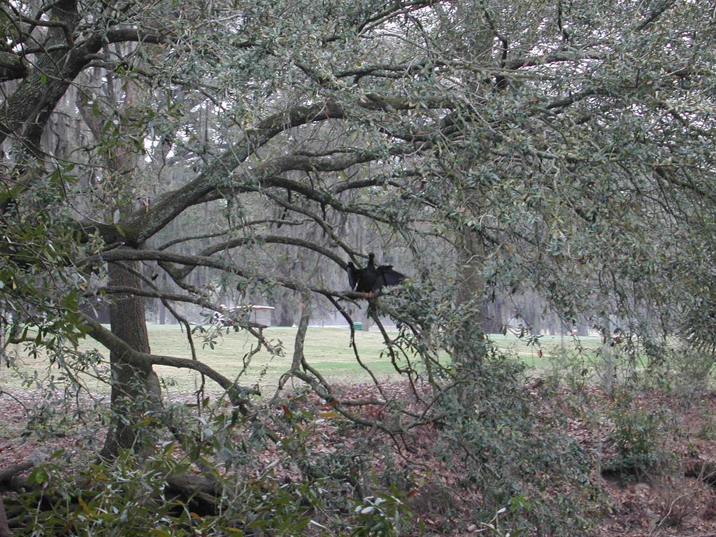 There was a large black bird doing something we could only guess was a mating dance in a tree.