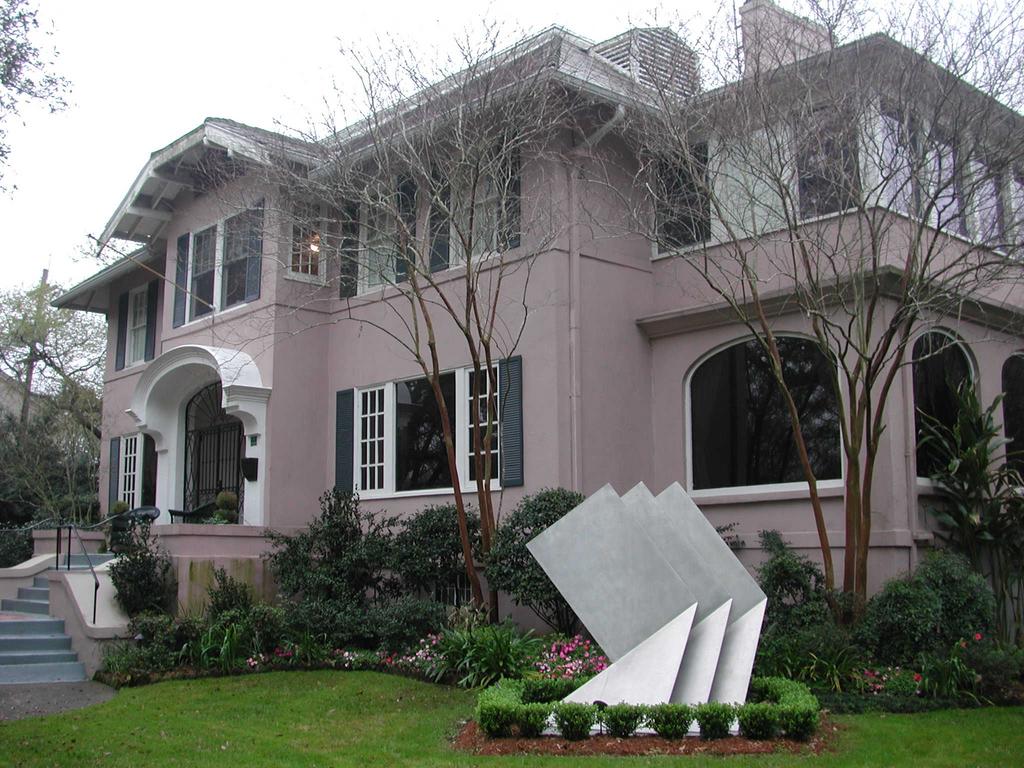 Along the edge of the park are several large houses. There's not even a road between them and the park; the cars have access to the houses from the back.