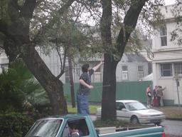 People were pulling the leftover beads down from the trees.