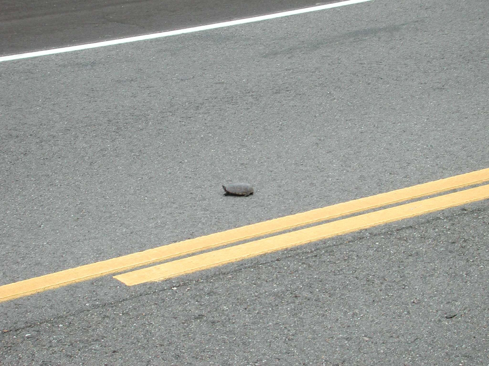 On our way to the swamp tour, Kat spotted this turtle trying to cross the road. It had gotten a little more than halfway.