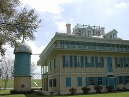 The large silos at the side of the house are for the storage of water. This enabled gravity-powered running water in the house.