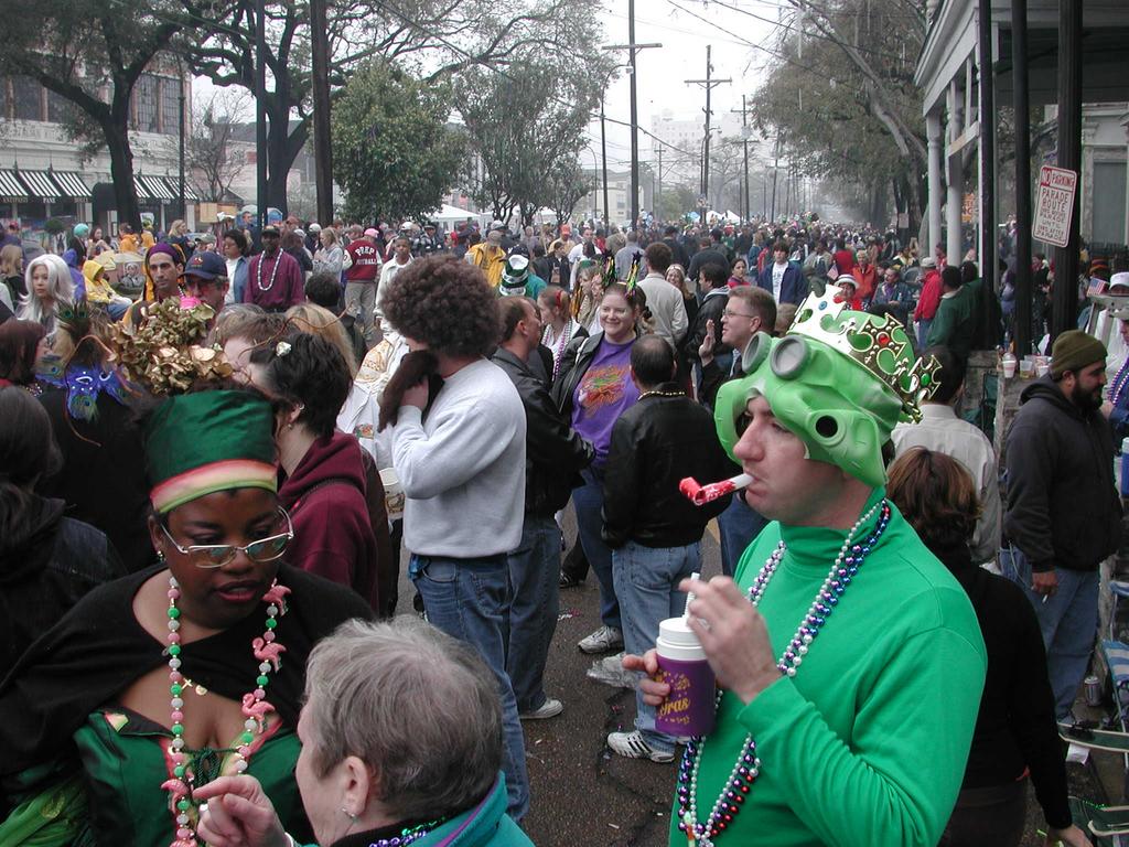 The throngs grow. Mardi Gras really reminded me a lot of Queensday (pictures from 1999, 2001, 2002). Mardi Gras had less orange, but more costumes, and many more beads.
