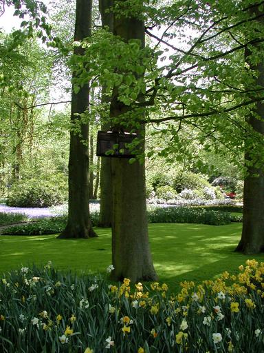 The briefcase hanging from the tree was part of an art exhibit in the garden called "Gnome Sweet Gnome".