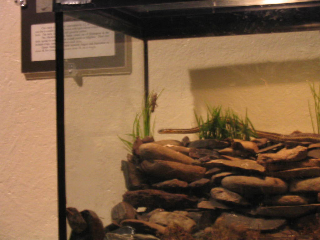 We went to the aquarium in St. Andrews. They had this snake, eyeing a grasshopper, but not actually making any move on it.