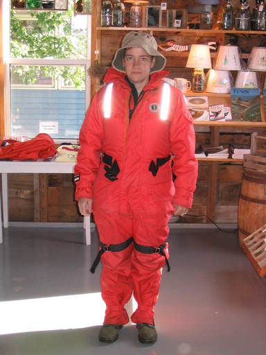 The next day, we went whale watching! We got dressed up in these funny "easy to spot in the water" suits.