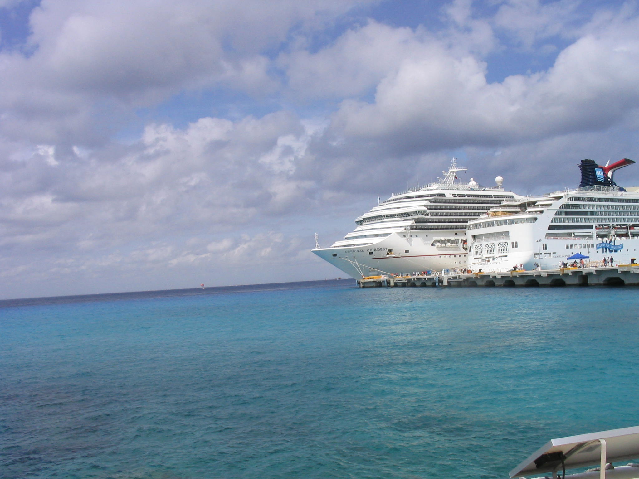 I was trying to take a picture of the colours of the open water, but a uniformed person told me I had to point my camera towards the cruise ships. Huh. I wonder if there was some kind of military thing in the other direction.