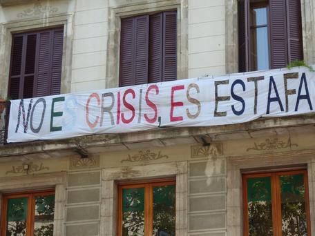 In the afternoon, Ian took siesta while Kat wandered around, mostly in El Raval, taking in the political banners flying everywhere. "It's not a crisis; it's a scam."