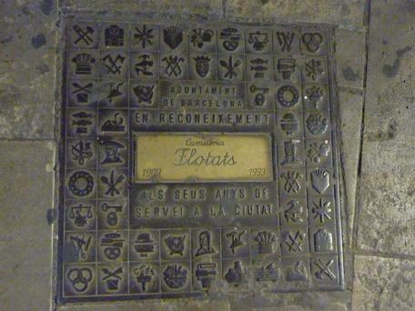 On our way to dinner that night, we came across a plaque inlaid to the ground. (We would see several other similar ones later.) "Camiseria Flotats: 1909 1993 / City Council / In recognition of his service to the city"