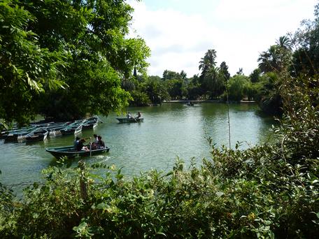 There's a little lake in the park.