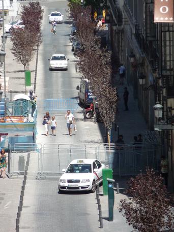 Our hotel in Madrid was near the national parliament. There had been recent riots, and so many of the streets were barricaded. Our taxi from the airport had to stop a few blocks away, and we walked the rest.