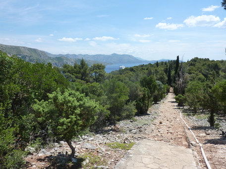 We walked the "Path to Paradise" leading to the fort at the highest point on the island. Here, looking back from partway up.