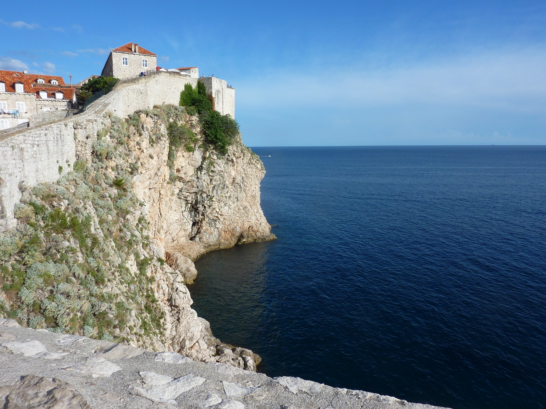 The city goes right up to the Adriatic Sea. (Though in a couple of places, there are bars squeezed between the city wall and the sea, from which one can jump off the rocks into the water.