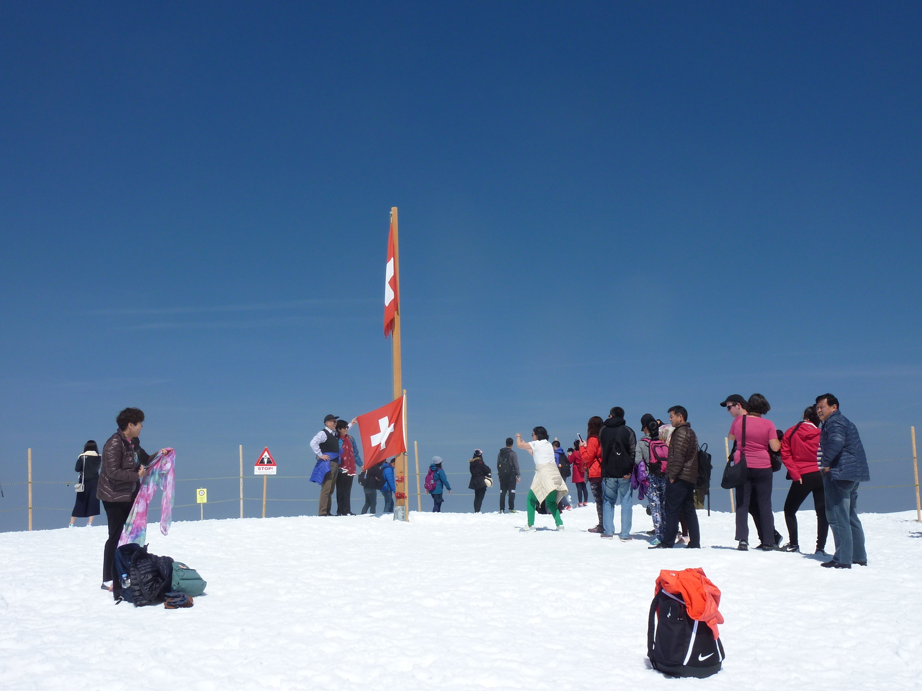 Back outside, you can take a photo with the Swiss flag ("a big plus").