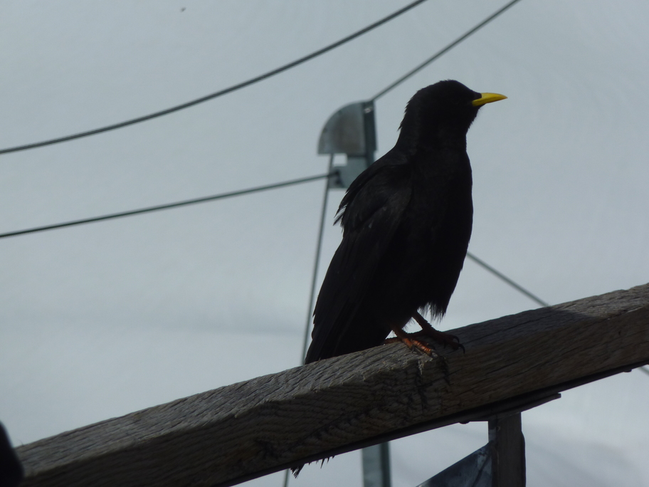 This bird was way up here at this altitude. It appears to be an Alpine Chough.