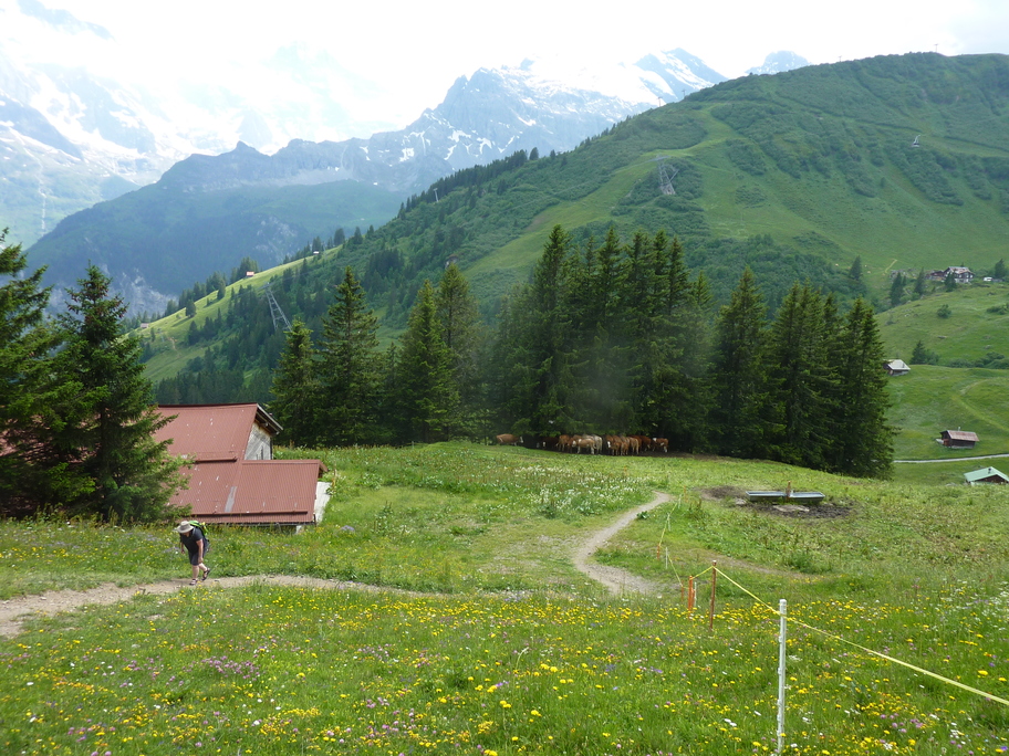 The first afternoon, we set out for a hike. We were aiming for one of the easy "Wanderweg" hikes, it being our first afternoon at altitude. But we somehow got turned around onto one of the more difficult trails, doing a 300 metre rise in 30+ Celcius heat and no shade, so it was a little more brutal than we had planned for.